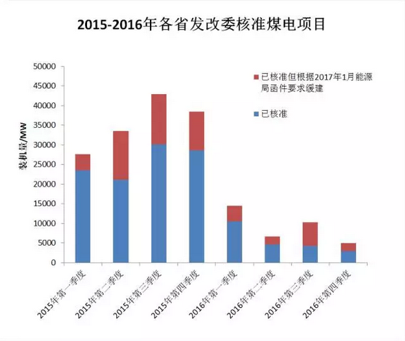此外,國家能源局在2017年1月下發(fā)13省《關于銜接“十三五”煤電投產規(guī)模的函》中叫停了超過50GW的在建項目和超過60GW已核準或列入規(guī)劃的項目。