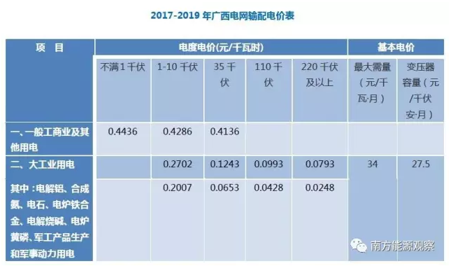數(shù)據(jù)來源:廣西壯族自治區(qū)物價局《關(guān)于廣西電網(wǎng)2017-2019年輸配電價有關(guān)問題的通知》