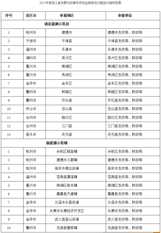 根據(jù)《浙江省發(fā)展改革委浙江省財政廳關(guān)于印發(fā)2017年度浙江省發(fā)展與改革專項資金競爭性分配部分實施方案的通知》(浙發(fā)改能源〔2017〕121號)的競爭性分配程序,現(xiàn)已完成初步審核和審核確認(rèn)兩個階段?,F(xiàn)將有關(guān)事項公告如下: