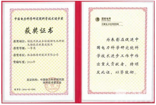 中國儲能網訊:3月22日中國客車網獲悉,銀隆新能源與中國電力科學研究院、中國科學院物理所合作的科學技術項目《儲能用鈦酸鋰電池及儲能系統(tǒng)研制》中憑借儲能用低成本鈦酸鋰電池研制及儲能系統(tǒng)集成技術榮獲中國電力科學研究院科學技術進步獎一等獎。