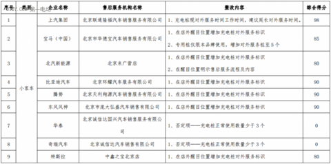 2016年10月17-24日,北京新能源汽車產(chǎn)業(yè)協(xié)會有關(guān)專家對在京已通過備案的13家小客車企業(yè)售后服務(wù)機構(gòu)從充電樁、標(biāo)識及服務(wù)落實、辦公場地、人力資源、維修設(shè)備五個方面進行了檢查評分。