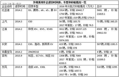 截至目前,9家外地乘用車企的16086輛純電動車,累計獲得北京新能源汽車補貼9.7億元。