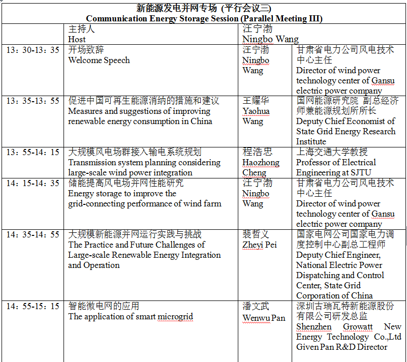 以下為新能源發(fā)電并網(wǎng)專場具體議程安排。