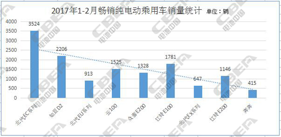 2017年1-2月暢銷純電動乘用車用電池分析