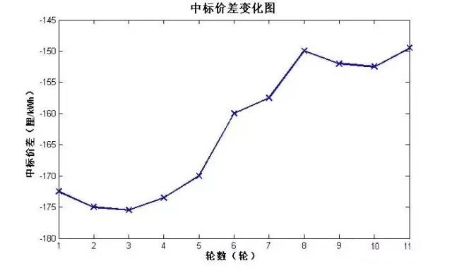 (3)所有成交的價差對中,最后一個成交的購電方與售電方申報價差的算術(shù)平均值為統(tǒng)一出清價差。