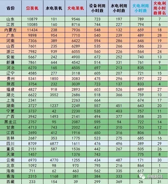 5)青海以水電為主,其火電裝機(jī)排名第30位,但其火電利用小時數(shù)排名第2位;