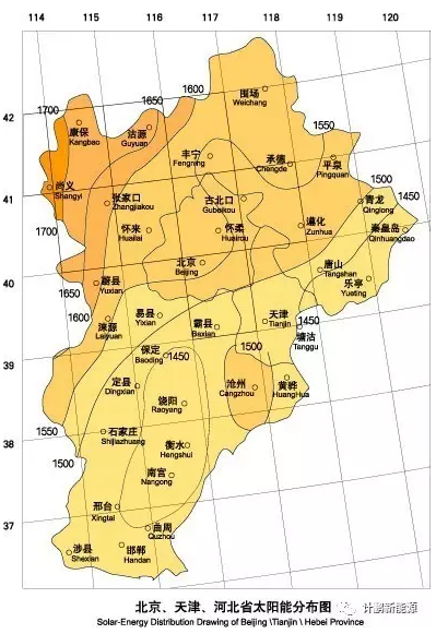 中國儲能網(wǎng)訊:2017年4月1日 ,中共中央、國務(wù)院決定再此設(shè)立的國家級新區(qū)由河北省保定市所轄雄縣、容城、安新3縣組成。根據(jù)國家氣象局太陽能資源分布圖譜(見下圖),年總輻射量在1450~1500kWh/m2,屬于太陽能資源“很豐富區(qū)”。