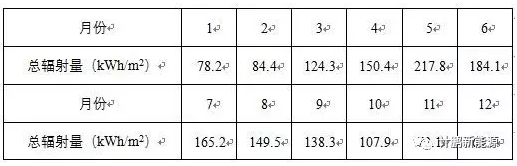 表1:雄安新區(qū)所在區(qū)域太陽能各月總輻射量表