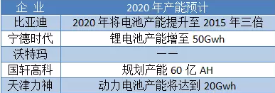 第一階梯動(dòng)力電池企業(yè)2020年產(chǎn)能規(guī)劃表