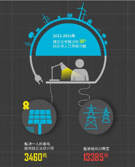 2013-2015年期間,中國(guó)共投資247.8億元以解決無(wú)電人口用電,其中光伏以16.5%的總投資解決了43.4%的無(wú)電人口用電問(wèn)題,成為偏遠(yuǎn)地區(qū)實(shí)現(xiàn)電力供應(yīng)成本中最經(jīng)濟(jì)的手段。