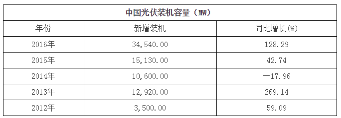 截至2016年底,中國光伏發(fā)電新增裝機(jī)34.54吉瓦,累計(jì)裝機(jī)77.42吉瓦,新增和累計(jì)裝機(jī)容量均列全球第一。