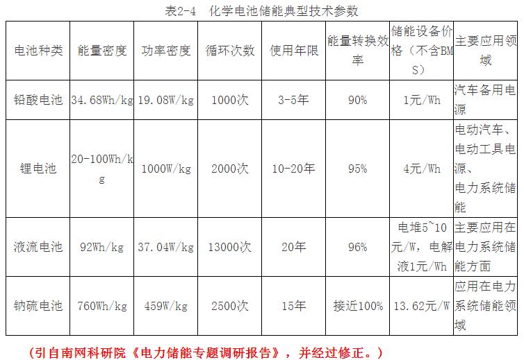 與電力系統(tǒng)相關(guān)的各種化學(xué)儲(chǔ)能的典型特性參數(shù)如表2-4所示。