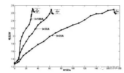 由上述放電曲線圖中可以看出,隨著放電電流的增大,在放電過程中,電壓降落也較快,當(dāng)鋰電池運(yùn)行在經(jīng)濟(jì)的電壓區(qū)間內(nèi),其電壓變化較為平緩,但當(dāng)電壓低于經(jīng)濟(jì)運(yùn)行區(qū)間的下限時(shí),其電壓跌落將會(huì)非常劇烈,如果電池長時(shí)間按此運(yùn)行,對電池的壽命有非常大的損耗,所以在控制電池運(yùn)行時(shí),通常控制在某個(gè)固定電壓區(qū)間內(nèi)運(yùn)行。