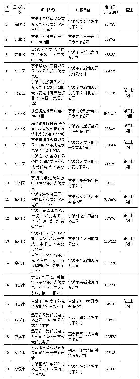 寧波市光伏發(fā)電補(bǔ)貼資金擬補(bǔ)助企業(yè)名單(第三批)