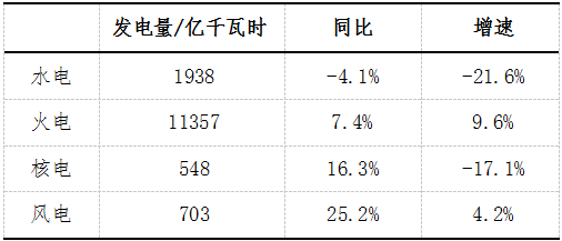 發(fā)電量增速同比提高。3月份,發(fā)電量5168.9億千瓦時(shí),同比增長(zhǎng)7.2%;一季度,發(fā)電量14587.2億千瓦時(shí),同比增長(zhǎng)6.7%,明顯加快?;痣娫鏊偌涌?,水電降幅收窄。3月份,火力發(fā)電同比增長(zhǎng)7.7%;受來水情況影響,水力發(fā)電同比下降1.3%。一季度,火力發(fā)電同比增長(zhǎng)7.4%,水力發(fā)電同比下降4.1%。核能、風(fēng)力和太陽能發(fā)電保持兩位數(shù)增長(zhǎng)。一季度,核能、風(fēng)力和太陽能發(fā)電同比分別增長(zhǎng)16.3%、21.8%和31.0%。截至3月底,全國(guó)6000千瓦及以上電廠裝機(jī)容量16.1億千瓦,同比增長(zhǎng)7.7%。其中,水電2.9億千瓦、火電10.6億千瓦、核電3473萬千瓦、并網(wǎng)風(fēng)電1.5億千瓦。
