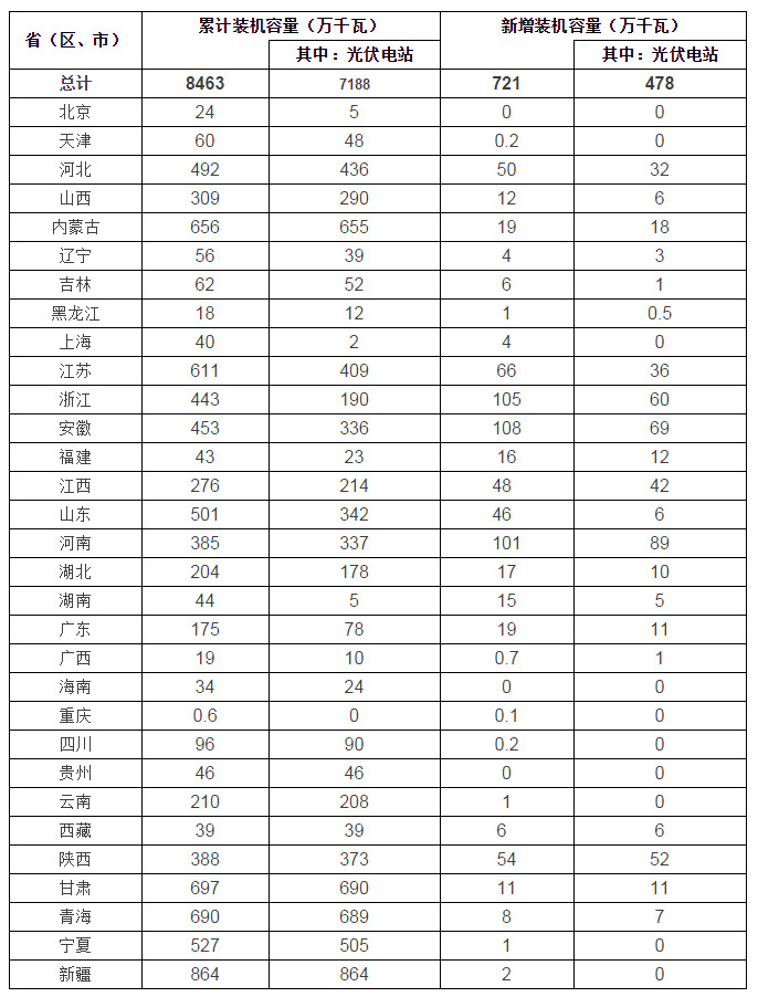 2017年第一季度光伏發(fā)電建設(shè)運行信息簡況