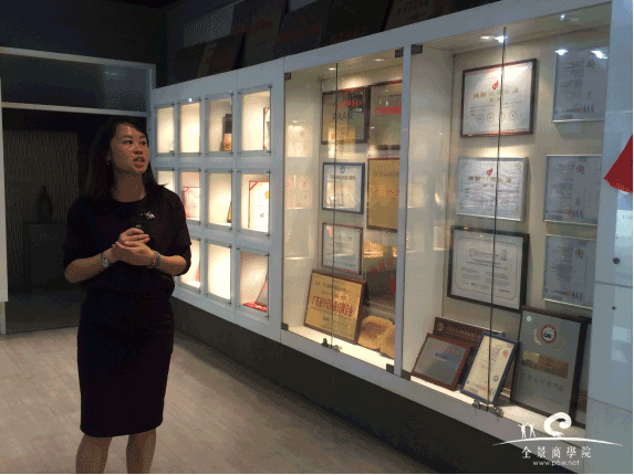 天賜材料董事會秘書禤達燕向全景商學院一行介紹公司的發(fā)展史