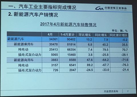 中國(guó)儲(chǔ)能網(wǎng)訊:5月11日,中國(guó)汽車工業(yè)協(xié)會(huì)召開4月汽車產(chǎn)銷情況發(fā)布會(huì)。在新能源汽車領(lǐng)域,新能源汽車產(chǎn)銷量分別為37306輛和34361輛,同比分別增長(zhǎng)19%、7.9%,其中,純電動(dòng)汽車產(chǎn)銷量分別完成30197輛和28570輛,同比增長(zhǎng)分別為26.1%和19.4%;插電式混合動(dòng)力汽車生產(chǎn)7108輛,同比下降3.9%,銷量5791輛,同比增長(zhǎng)26.8%。
