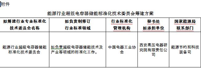 國家能源局綜合司關(guān)于征求對擬組建能源行業(yè)超級電容器儲能標(biāo)準(zhǔn)化技術(shù)委員會意見的函