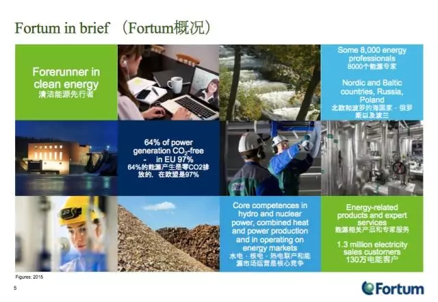 來自芬蘭的Fortum能源公司(富騰公司)介紹了他們的能源業(yè)務。2015年富騰公司銷售額34.59億歐元,其業(yè)務不僅在芬蘭,還涉及波羅地海各國,以及俄羅斯等國。這家公司以前的主營業(yè)務是發(fā)電,核電和水電?,F(xiàn)在,他們宣稱是一家清潔能源公司,為客戶提供電力,供熱和供冷,以及提高能源效率的智能解決方案。