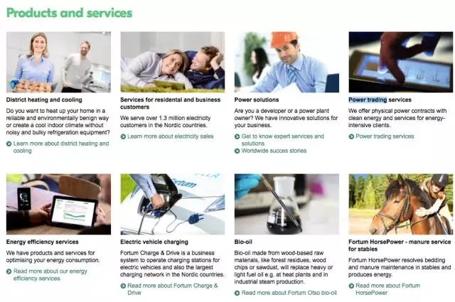 大家可以到富騰公司的網(wǎng)站http://www.fortum.com/對比一下這家企業(yè)的能源產(chǎn)品和服務與中國傳統(tǒng)能源公司的差異,或許,這可能將是我們下一步將走的路。