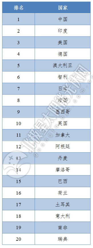 在RECAI排名中,印度排名第二,穩(wěn)步上升。到2020年印度可再生能源發(fā)電目標(biāo)為175GW,其中100GW為光伏發(fā)電。過去三年中,該國(guó)已經(jīng)安裝了超過10GW的太陽能發(fā)電。