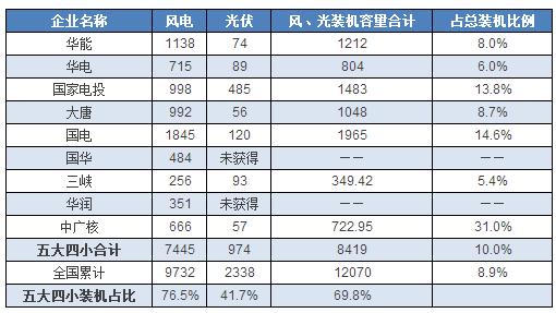 注:數(shù)據(jù)來源為王淑娟微信。未能找到國(guó)華、華潤(rùn)的光伏發(fā)電項(xiàng)目的裝機(jī)容量。