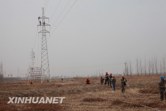 4月4日,國家電網山東濱州供電公司電建工人正在施工。