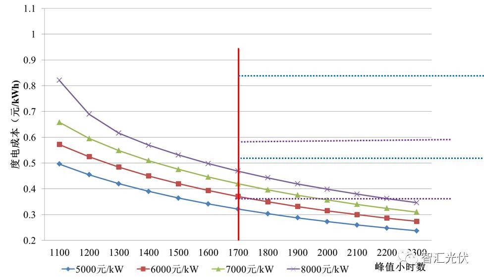 當(dāng)造價(jià)到達(dá)5000元/kW時(shí),幾乎大部分地區(qū)的度電成本都低于當(dāng)?shù)氐拇蠊I(yè)銷售電價(jià);在資源好的地區(qū)可以有一定利潤。