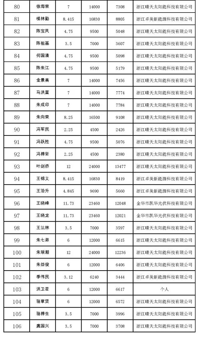 中國儲能網(wǎng)訊:根據(jù)《浙江省人民政府關(guān)于進(jìn)一步加快光伏應(yīng)用促進(jìn)產(chǎn)業(yè)健康發(fā)展的實(shí)施意見》(浙政發(fā)〔2013〕49號)、《關(guān)于轉(zhuǎn)發(fā)國家發(fā)展改革委發(fā)揮價格杠桿作用促進(jìn)光伏產(chǎn)業(yè)健康發(fā)展的通知》(浙價資〔2014〕26號)等文件精神,現(xiàn)對我市第一批居民光伏發(fā)電補(bǔ)助項(xiàng)目進(jìn)行公示,具體名單見附表。