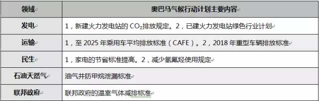 奧巴馬政府于2013年6月發(fā)表了Climate Action Plan氣候行動計劃。目標(biāo)是到2025年的碳排放量比2005減少26%~28%,到2050年減少50%。針對發(fā)電、運輸、民生、石油天然氣、聯(lián)邦政府五大能耗領(lǐng)域提出了嚴(yán)格的排放限定。