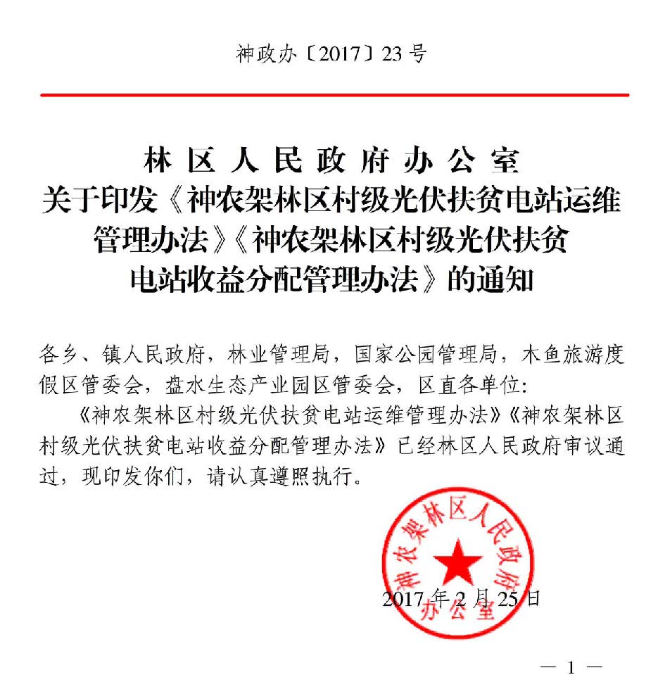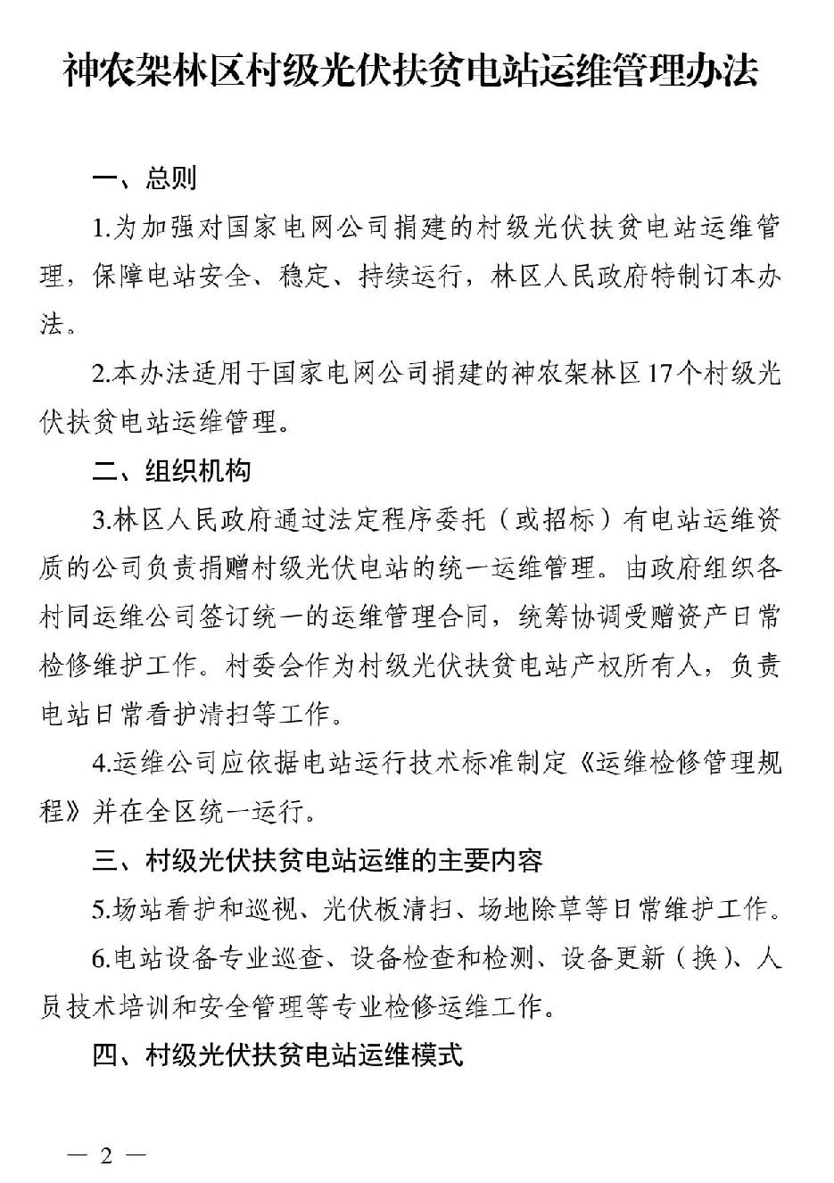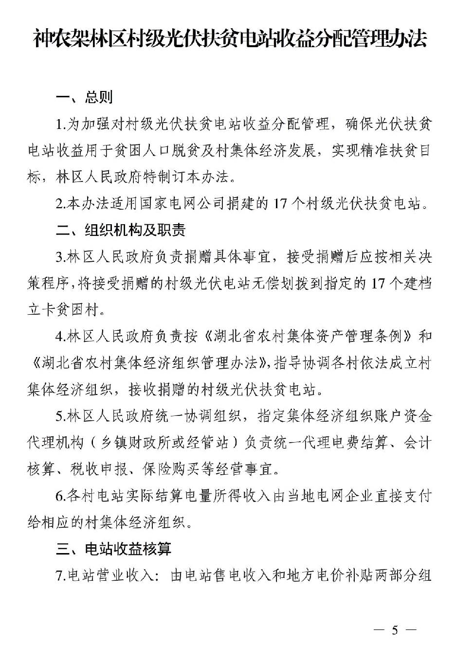 湖北神農(nóng)架林區(qū)關(guān)于村級光伏扶貧電站運(yùn)維和收益分配管理辦法