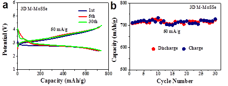 圖2 MoS2/MoSe2正極的鋰空氣電池電化學(xué)性能