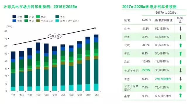 中國(guó)儲(chǔ)能網(wǎng)訊:2017年二季度風(fēng)電市場(chǎng)展望:全球風(fēng)電新增容量十年預(yù)測(cè)上調(diào)10.8GW,未來(lái)五年內(nèi)將實(shí)現(xiàn)上調(diào)預(yù)測(cè)容量的60%。