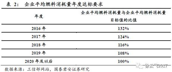 具體車型油耗量目標(biāo)值見工信部發(fā)布的GB27999-2014《乘用車燃料消耗量評價(jià)方法及指標(biāo)》。此處無須考慮新能源汽車的放大倍數(shù)。