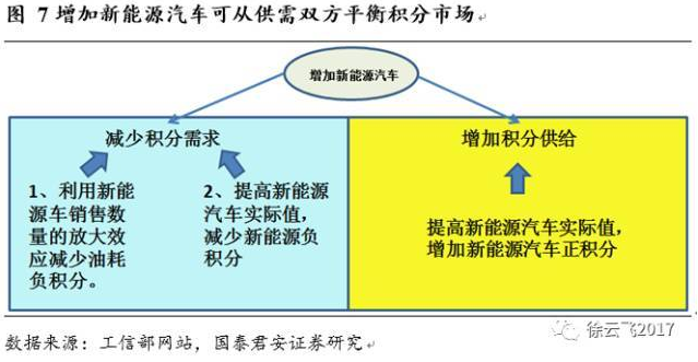 綜合供需兩端考慮,生產(chǎn)新能源汽車是目前最優(yōu)選擇。生產(chǎn)新能源汽車對于平衡積分市場具有三重作用: