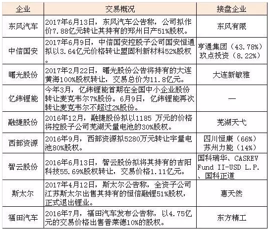 據(jù)了解,從去年以來,包括中信國(guó)安、東風(fēng)汽車、億緯鋰能、融捷股份、西部資源、智云股份、斯太爾、福田汽車等上市公司都對(duì)旗下部分業(yè)務(wù)進(jìn)行轉(zhuǎn)讓或減持,交易金額超過30億元。