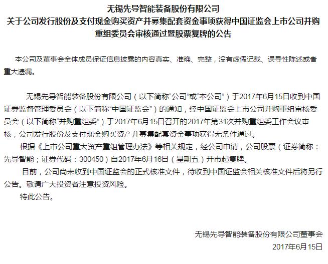 中國儲能網(wǎng)訊:6月15日,先導智能收購泰坦新動力終于塵埃落定,該并購重組案通過了中國證監(jiān)會召開的2017年第31次并購重組委工作會議審核,公司發(fā)行股份及支付現(xiàn)金購買資產(chǎn)并募集配套資金事項獲得無條件通過。