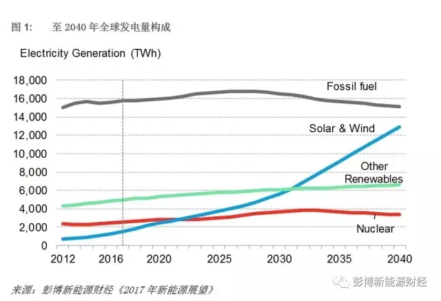 彭博新能源財(cái)經(jīng)《2017年新能源展望》報(bào)告的主要作者Seb Henbest表示: “今年的報(bào)告顯示出全球電力系統(tǒng)的綠色化勢不可擋,這得益于太陽能和風(fēng)電成本的快速下降以及包括應(yīng)用在電動汽車內(nèi)的等多種電池技術(shù)在平衡電力供需中日益增強(qiáng)的作用?!?