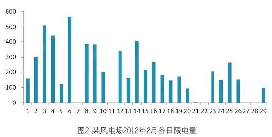 如圖2所示,2012年2月限電最多的是6日,限電量為5650MWh。7、11、21、22、27、28日限電量為0kWh。