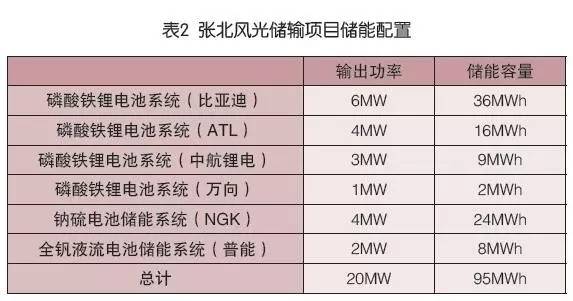 國家電網(wǎng)公司在河北省張北建設了風光儲輸示范項目,為100MW風電和40MW光伏項目配置了20MW/95MWh的儲能,儲能部分采用鋰電池、鈉硫電池和全釩液流電池三種技術,由不同廠家提供,如下表所示: