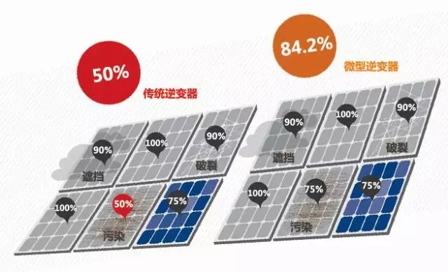 從系統(tǒng)本身考慮,多路MPPT的實(shí)現(xiàn)將可降低陰影遮擋的影響。例如,微型逆變器光伏系統(tǒng)為全并聯(lián)設(shè)計(jì)電路,每塊組件都具有獨(dú)立MPPT,可以實(shí)現(xiàn)最大功率輸出,使得陰影、灰塵、樹葉對(duì)電池板的部分遮擋,不再有短板效應(yīng),消除了組件遮擋、朝向和角度不同而造成的失配問(wèn)題,大大提高了發(fā)電量。