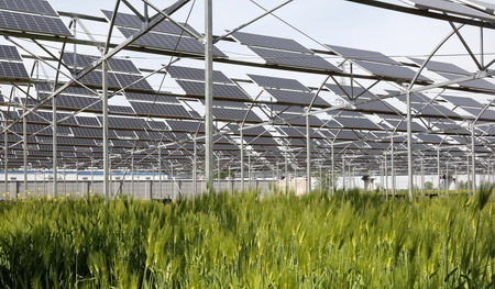 中國儲能網(wǎng)訊:從空中俯瞰連云港灌云縣楊集鎮(zhèn)的農(nóng)業(yè)產(chǎn)業(yè)園,蒼翠綠野間灑滿金子般的耀眼陽光,電流從這里輸送出去,用陽光點(diǎn)亮黑夜。2017年6月13日19時28分,隨著大唐灌云光伏一期10兆瓦項目的成功并網(wǎng)發(fā)電,又一個“大唐之最”誕生。這個集團(tuán)公司首個農(nóng)光互補(bǔ)光伏發(fā)電項目,努力詮釋著新能源項目“精品示范”的含義。