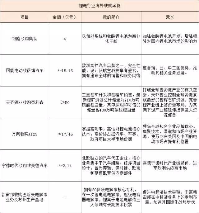 如此看來,鋰電行業(yè)內(nèi)確實(shí)存在較為成功的海外收購(gòu)案例,并已為收購(gòu)方帶來實(shí)際利益,據(jù)此,GGII認(rèn)為,“海外淘寶”戰(zhàn)略同樣適用于當(dāng)下的鋰電相關(guān)企業(yè)。