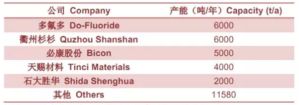 2017年中國六氟磷酸鋰產(chǎn)能表
