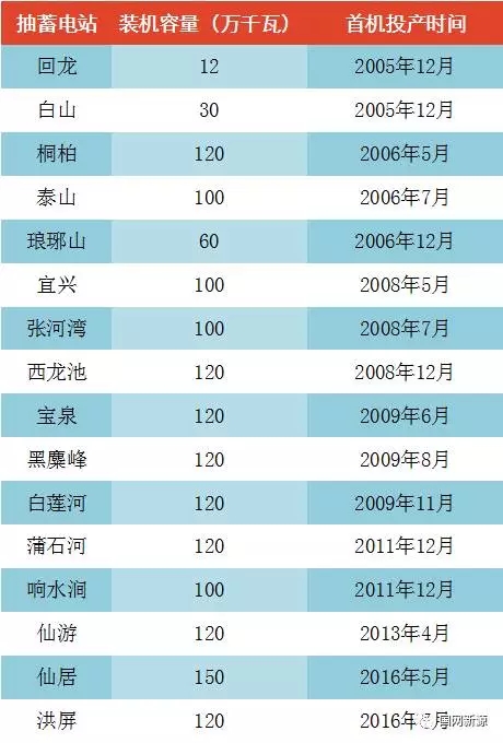 2005年以來投運(yùn)的抽水蓄能電站