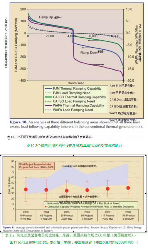 次小時(shí)(低于1小時(shí))需求側(cè)管理和此小時(shí)發(fā)電調(diào)度為常規(guī)發(fā)電機(jī)組實(shí)現(xiàn)機(jī)動(dòng)性能提供了便利。在某些區(qū)域,只允許按照以小時(shí)為單位進(jìn)行調(diào)節(jié),不能充分發(fā)揮現(xiàn)有的彈性,但并不是因?yàn)榘l(fā)電機(jī)組不具備這樣的性能,而是當(dāng)?shù)氐氖袌?chǎng)規(guī)則決定的。例如,美國(guó)的“大區(qū)域輸電管理”系統(tǒng)(RTOs)已經(jīng)根據(jù)次小時(shí)市場(chǎng)需求成功運(yùn)行了多年。風(fēng)電的集群化進(jìn)一步降低了大規(guī)模風(fēng)電的波動(dòng)性,凈負(fù)荷強(qiáng)化了非線性波動(dòng),而調(diào)節(jié)性能則有線性提高。