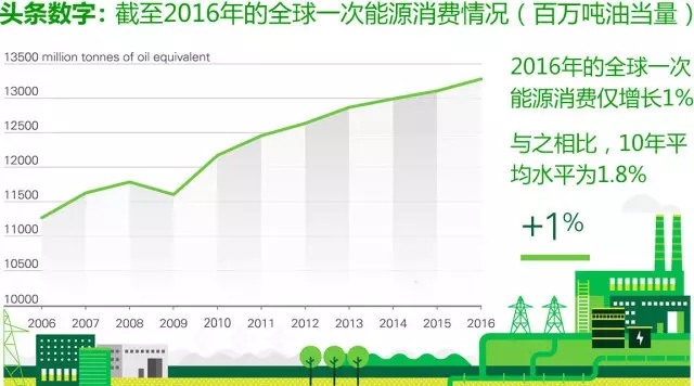 2016年中國能源消費(fèi)增長1.3%。增速不足過去十年平均水平5.3%的四分之一。