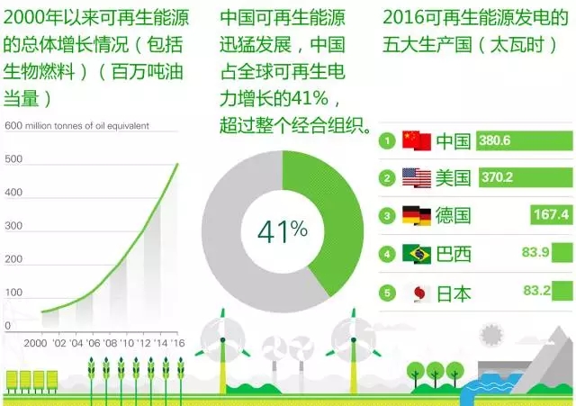 可再生能源消費(fèi)全年增長33.4%。十年間,中國可再生能源消費(fèi)在全球總量中的份額由2%提升至2016年的20.5%。