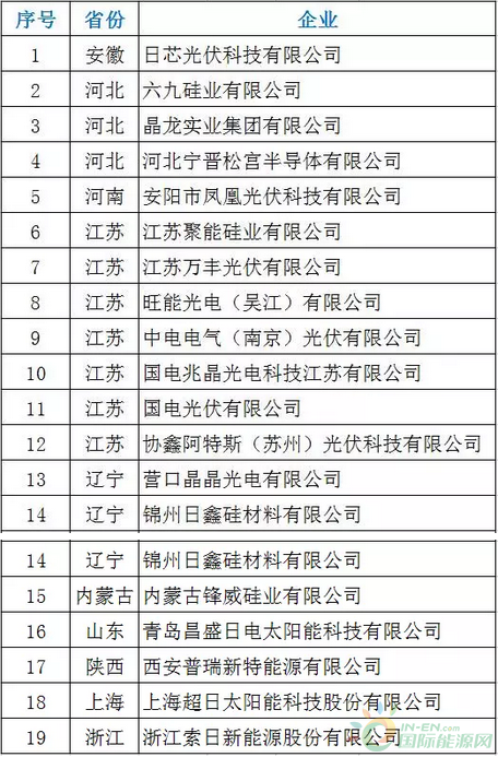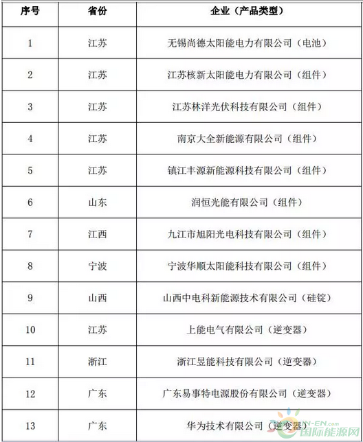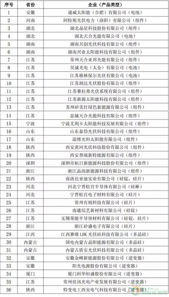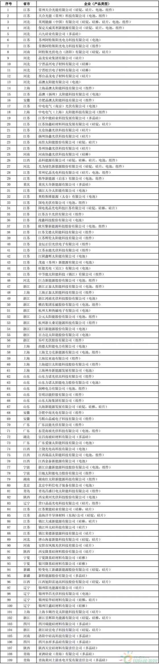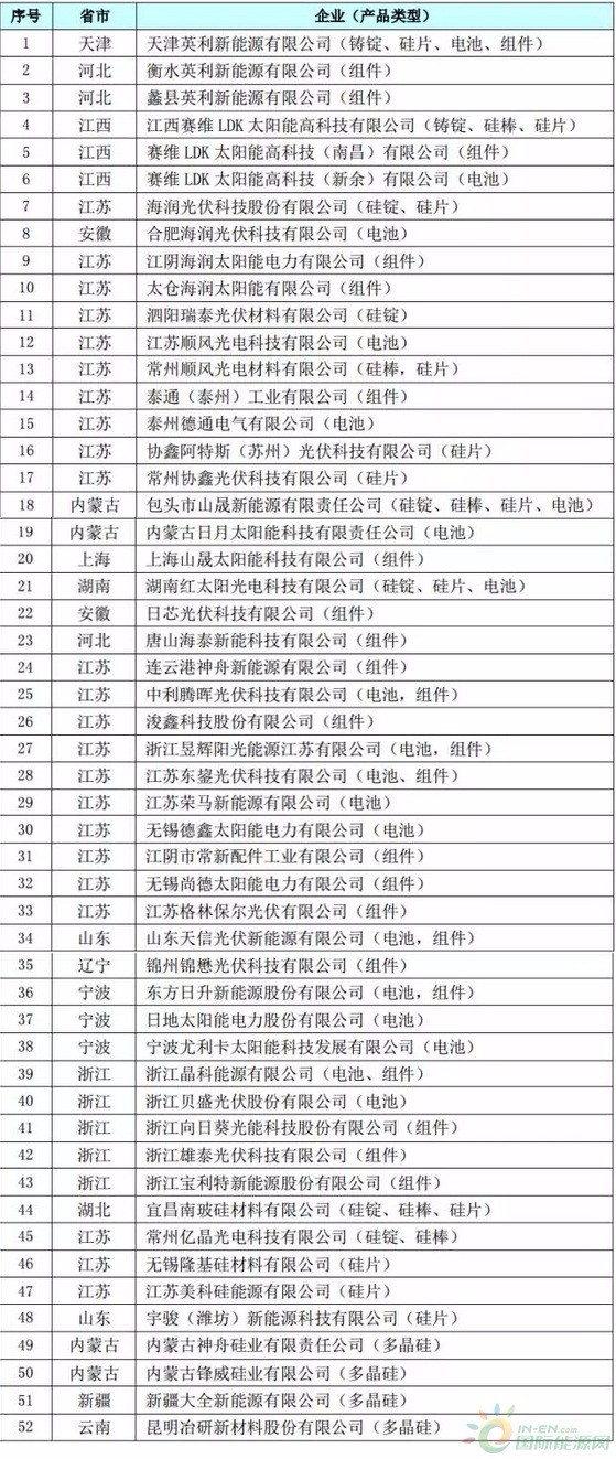 第一批符合《光伏制造行業(yè)規(guī)范條件》企業(yè)名單